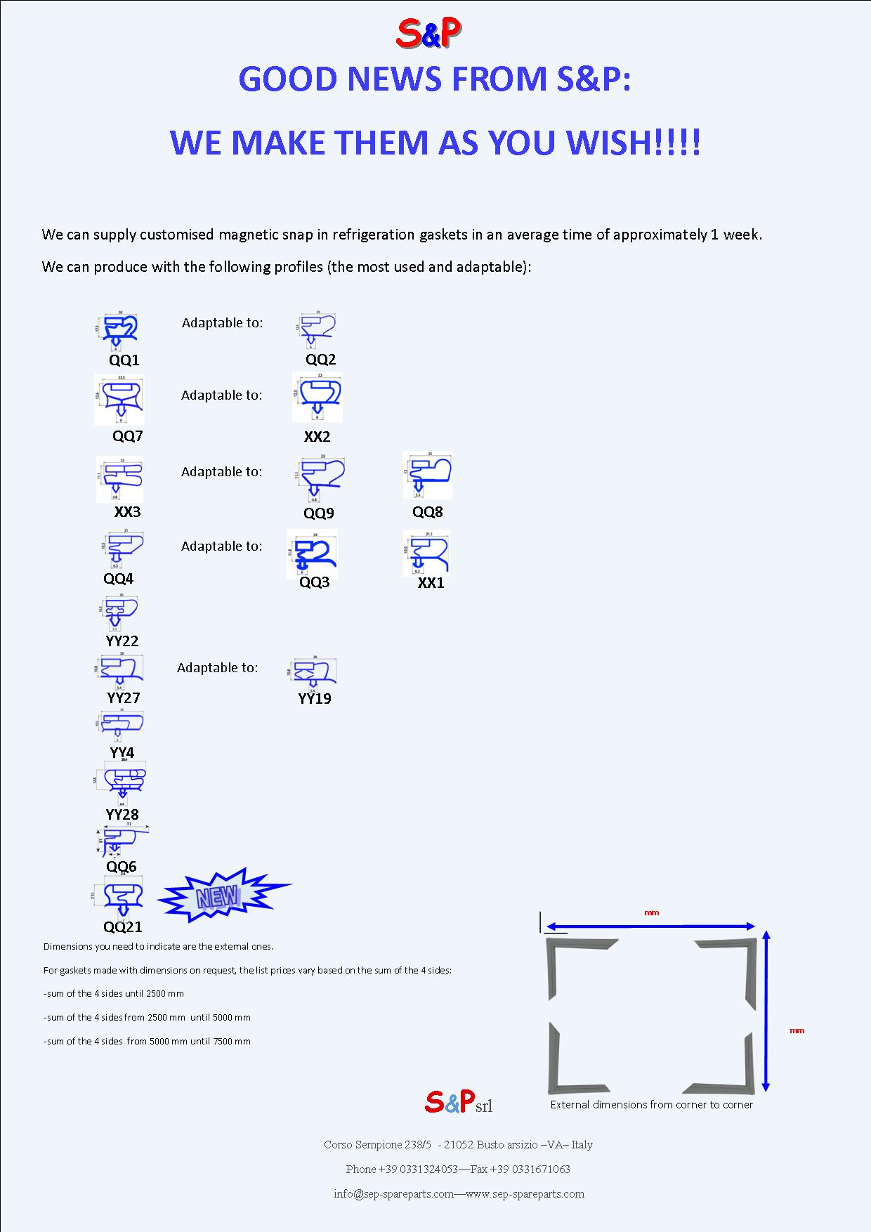 New!!! We have added the QQ21 to our profiles. As with all the others, we can make customised gaskets (please indicate the external dimensions).